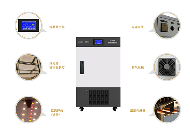 ● 微电脑程序控制温度、光照度,可模拟白天及黑夜的温度变化,也可选择生长环境充足稳定的光源。