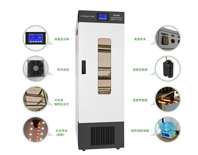 ● 微电脑程序控制温度、气候度,可模拟白天及黑夜的温度、湿度变化,也可选择生长环境充足稳定的光源。