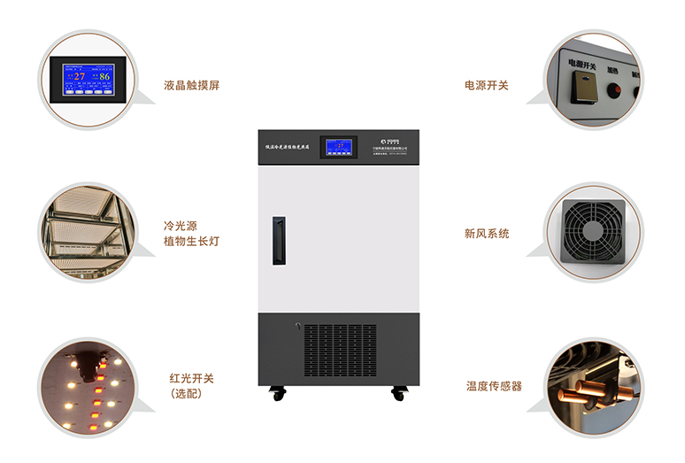 ● 微电脑程序控制温度、光照度,可模拟白天及黑夜的温度变化,也可选择生长环境充足稳定的光源。