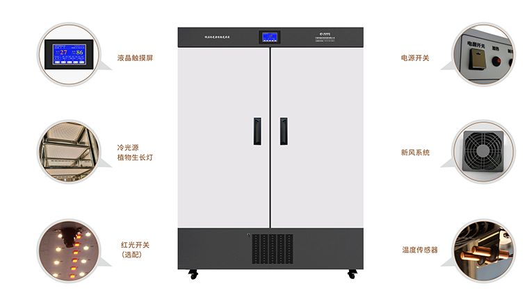 ● 微电脑程序控制温度、湿度、光照度,可模拟白天及黑夜的温度、湿度变化,也可选择生长环境充足稳定的光源。